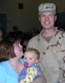 Dean didn’t leave Maine for Fort Drum with the rest of his unit in late January 2004. Instead he boarded an early-morning flight five weeks later on his own. Becki was pregnant and due in late February, about the same time Dean would have been touching down in Kuwait. It was a high-risk pregnancy and he was given permission to remain at home until the baby was born.