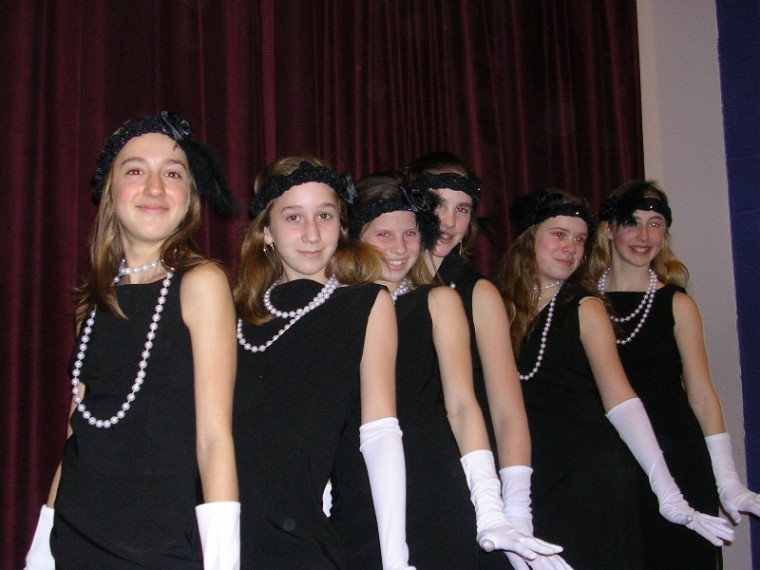 The show is an upbeat musical comedy that pays tribute to the gangster movies of the 1920s and ’30s. The cast and crew are comprised of 75 students ranging from fifth to eighth graders. Bugsy (A.J. Frustaci) tries to make peace between two rival gangs and at the same time win the heart of Blousey Brown (Sara Friedman), a country girl who is trying to make it in the big city.