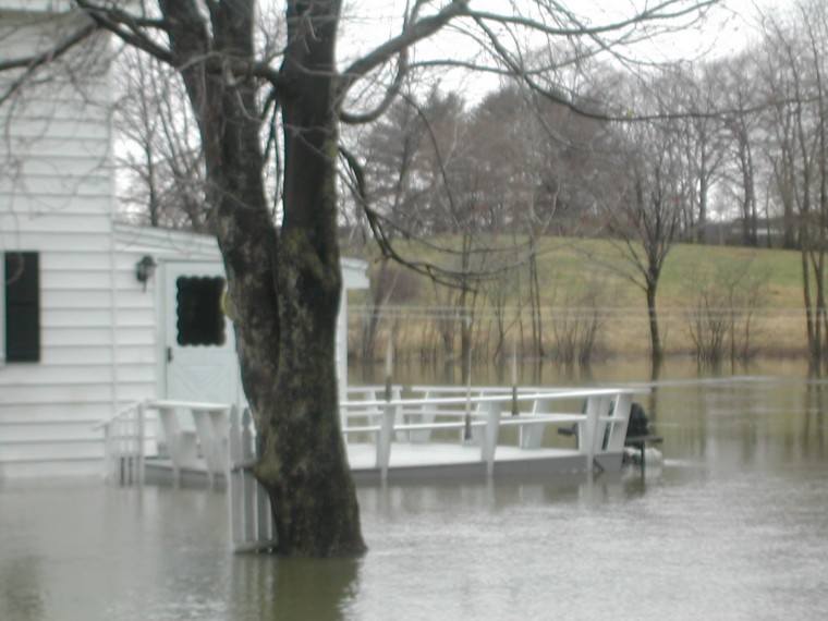 High water from the Presumpscot River threatens a house on Lincoln Street Thursday afternoon.