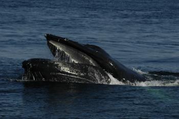 A whale feeds at Platts Bank, where researchers are studying the ocean ecosystem.
