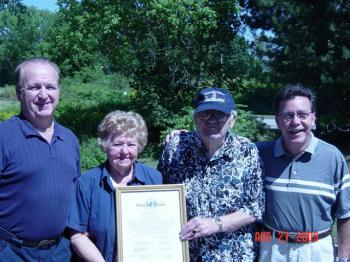 John and Virginia DiBiase are honored by representatives Bob Duplessie, on the left, and Tim Driscoll on the right.