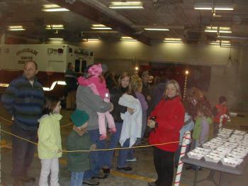 Parents and children wait to see Santa on Sunday at Central Fire Station in Gorham.