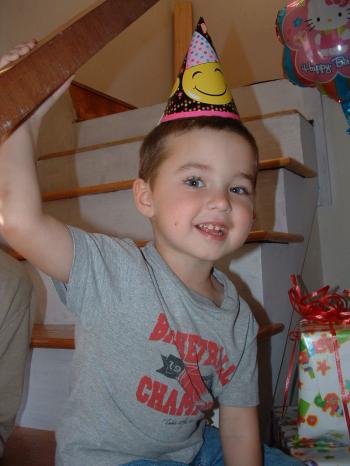 Johnathan Merrill, wearing his party hat, turns 4.