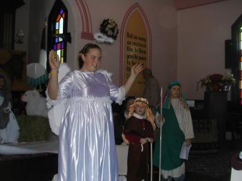 Cast members included Wayne Jose, the innkeeper; Abigail Ward, Gabrielle; Taylor Vellieux, Jordan Bishop, Jennifer Leeman, Elizabeth Leeman, Stefanie Peterson, Alexis Jongerden and Arielle Peterson, all angels; Adam Hicks, lead shepherd; Rubin Anderson, Molly Ward and Bobby Armentino, all shepherds; Jacky Hodgdon, Harold Hodgdon, Pat Lines, Claire Lines, Ann Miller, Burnie Page, Joyce Jose, Pam Doyle, Bill Mitchell and Lurvey, all senior choir members.
