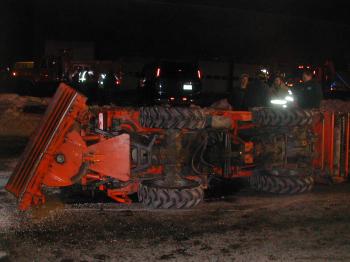 Public Services Director Tom Eldridge said last week that he was still not sure what caused the plow to roll over. He said the driver had just gone around a turn and the pavement was dry when the machine suddenly tipped over.