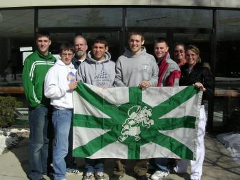 Cutline (Bonny Eagle honors flag) – Bonny Eagle honors state champions Shawn Smith) – the 4 x 800 Relay Team – State Class A champions; Swim Coach Laura Branch; Hannah Branch, State Class A champion in 100 yard butterfly; and (not pictured) John Wiechman – State Class A champion in shot put.