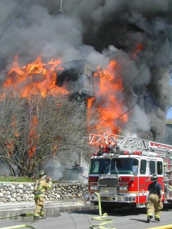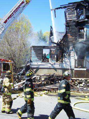 Littlefield said the first attempt by firefighters to enter the building was thwarted by heavy black smoke. The firefighters then changed tactics, fighting the fire from the outside, using automated hoses attached to the ends of ladders. One engine from Westbrook was set to work on the east side of the house and an engine from Portland attacked the fire from the west side.