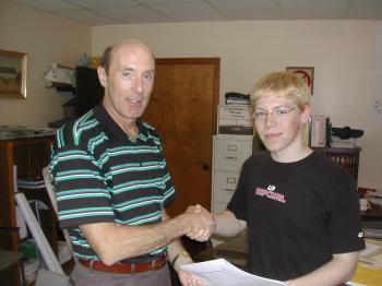 Gorham High School senior Ben Farrar discussed his plans for a summer community service project with Gorham Town Manager David Cole on Friday.