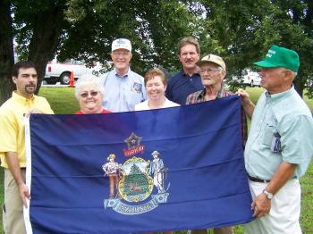 Representatives to legislature Dave Farrington, D-Gorham, and Don Marean, R-Hollis, presented Buxton’s Board of Selectman with a state flag in a ceremony during the recent Buxton Community Day.