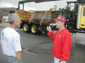 McLean works for Hillside Lumber Company of Westbrook, the company that donated about $3,000 in lumber for the memorial. Steve Roberts of Gorham, a Marine Corps veteran, rode aboard the lumber truck with McLean.