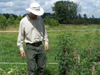 David Buchanan rids his tomatoes of pests without pesticides, choosing instead to grow organicially and pick off tomato hornworms by hand.