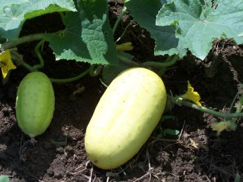 One of the vegetables Buchanan is trying to bring back is this yellow cucumber, which is ready for harvesting.