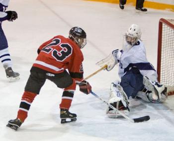 In the extra session, senior defenseman Steve Cook ended it with an unassisted goal that sends the Red Storm into a West A semifinal match-up with top-seeded Falmouth. The 2-1 win by the fifth-seeded Storm over the fourth-seeded Bulldogs also means that Scarborough and Falmouth will meet for the third time this season.