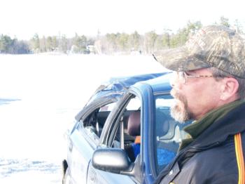 Dunton’s blue Subaru hatchback was the point of impact for an 800 cc Arctic Cat that launched off a snow bank and sailed over the rack of a Chevrolet truck. After the machine plopped onto his car, Dunton said the snowmobile bounced onto the hood of another truck before hitting the ice.