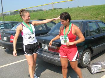 Sisters Erica Vargo, 33, of Raymond and Kristal Ward, 35, of Windham, toed the starting line together this year at the TD Banknorth Beach to Beacon 10K road race in Cape Elizabeth. Both had run the race before in past years, but because of busy schedules and Vargo’s brief residence in New York, they have not had a chance to run it together.