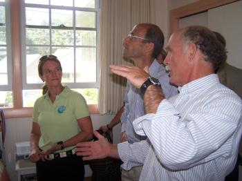“What you’re doing reflects what Mainers are struggling with,” Gov. John Baldacci told MacColl on Aug. 21, when he visited MacColl’s Cape Elizabeth home for an assessment of the house’s energy use. The demonstration was put on by Maine Home Performance, which is part of a national program dedicated to improving energy efficiency through home analyses and improvements.