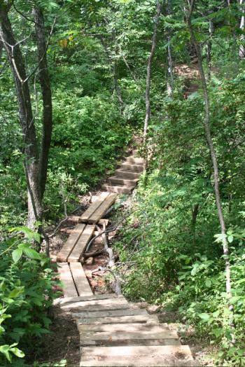 Blake noted that no taxpayer money was used to create Clark’s Pond Trail, which has three footbridges that cross streams and several wood stairways built into the land as the slope changes.