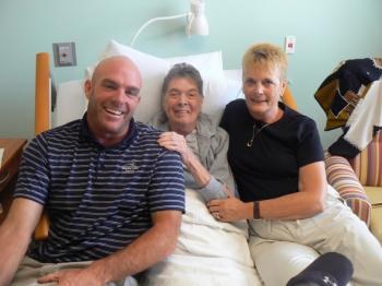 Frannie Redstone, who is dying of melanoma, sits in her bed at Gosnell Memorial Hospice House with her grandson Christopher and daughter Carol.