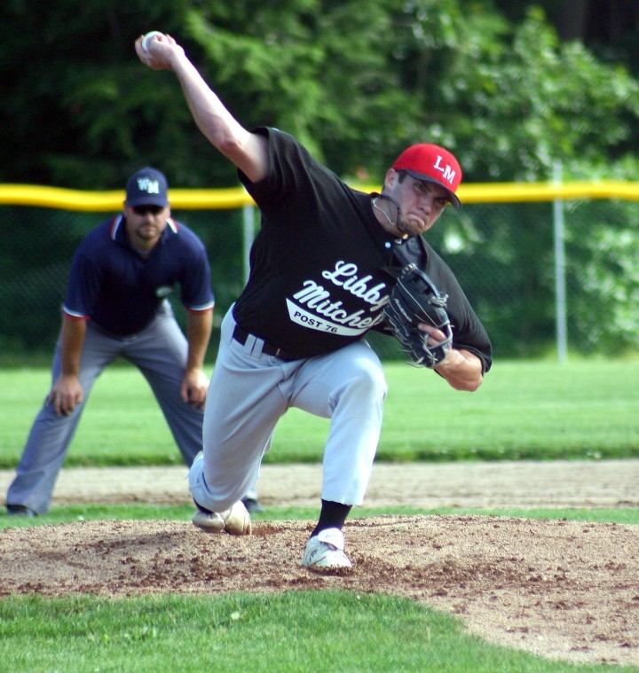 Libby-Mitchell pitcher Chris Bernard settled in after the first inning, allowing only three hits the rest of the way and keeping Stockhouse (14-5) off the scoreboard for the final eight innings. Bernard struck out 13 – including the side in order in the bottom of the ninth – in a complete game.