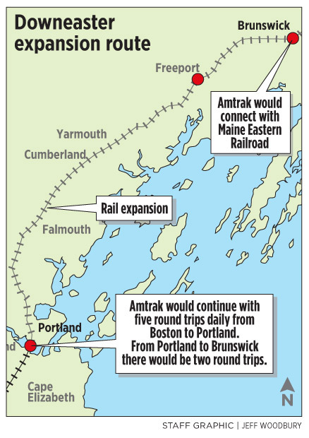 Baldacci said the expanded service will benefit the state’s economy by attracting more tourists. He noted the Downeaster will provide a connection to the Maine Eastern Railroad, which operates an excursion train between Brunswick and Rockland.