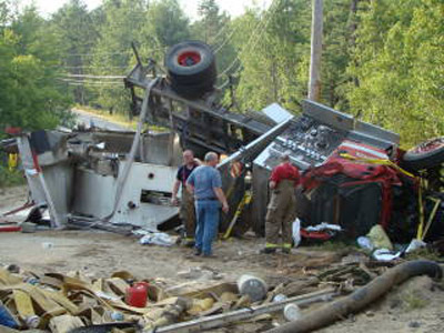 Natasha Kenny, 30, of Lebanon, a captain who has been a member of the department for five years, was returning from a call when she lost control of the pumper-tanker carrying 1,800 gallons of water. The truck hit the soft shoulder and rolled over on Newfields Road.