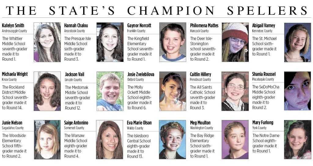 For the second year, Jordan was dubbed champion of the Maine State Spelling Bee, sponsored by NextGen and hosted by MaineToday Media Inc., which publishes The Portland Press Herald/Maine Sunday Telegram, the Kennebec Journal in Augusta and Morning Sentinel in Waterville, the weekly Coastal Journal in Bath and their respective Web sites.