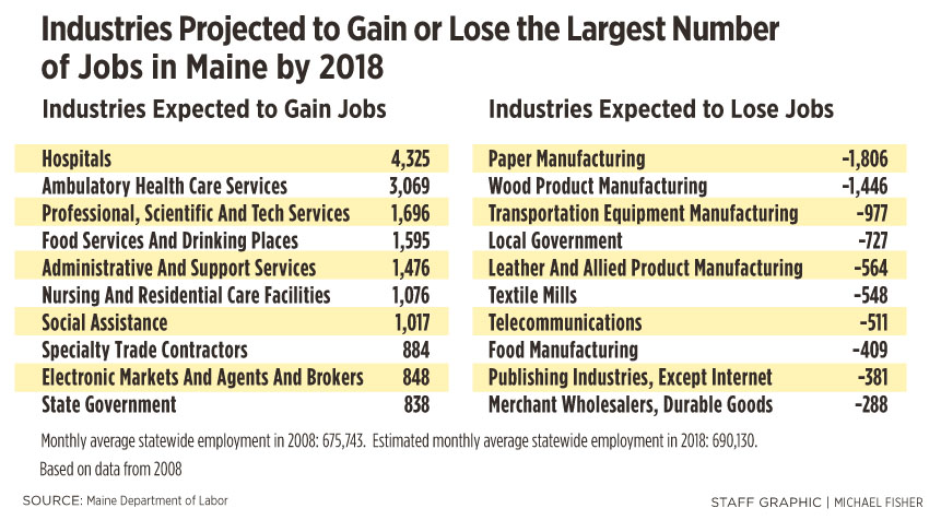 Hospitals and other health care sectors are expected to add more than 8,000 jobs by 2018. An additional 2,325 jobs are expected for registered nurses alone, according to the Maine Department of Labor’s most recent estimates, which are based on 2008 data.