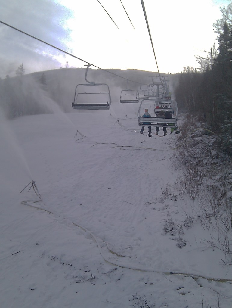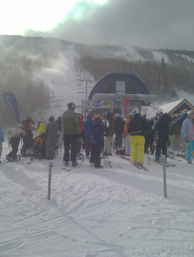 More than 100 people lined up Saturday morning to be among the first skiers to ride the new lift.