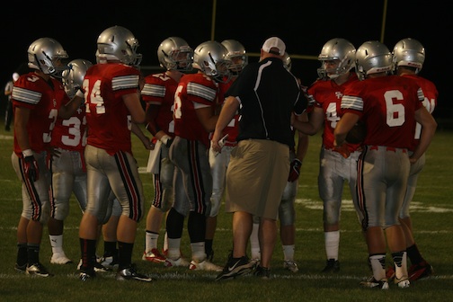 South Portland coaches try to fire their team up in the second half of their 47-13 defeat to Windham. The Red Riots next face Biddeford away on Friday night.