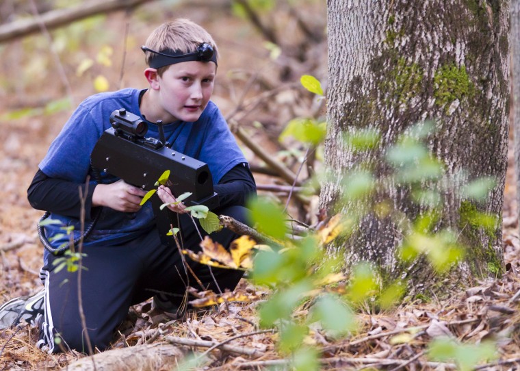 Every Friday through Nov. 2, the group meets just behind the community center to take part in laser tag missions and competitions in field settings around and even inside the building.