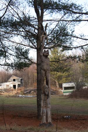 This tree, carved into different animal shapes, sits alongside Elmwood Road in Pownal.