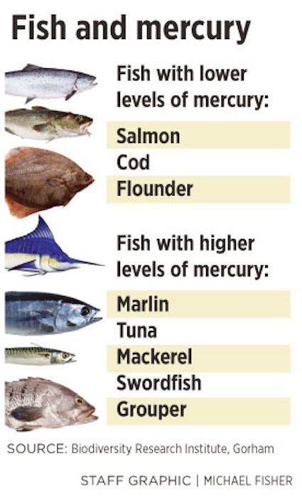 Cod, salmon and flounder are considered “low mercury” fish, especially when compared to marlin, tuna, mackerel, swordfish and grouper, which all manifest high levels of mercury contamination, Evers said.