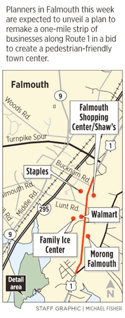 “I think all those improvements will make a huge change for Falmouth, and make it a more distinctive community, and not just a drive-through on the way to Cumberland and Yarmouth,” said Bonny Rodden, who sits on the Community Development Committee that is drafting the plan, and is a Falmouth town councilor. “It will help our identity.”