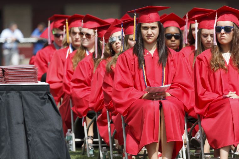 Members of the Scarborough High School class of 2013 patiently await the presentation of their diplomas.