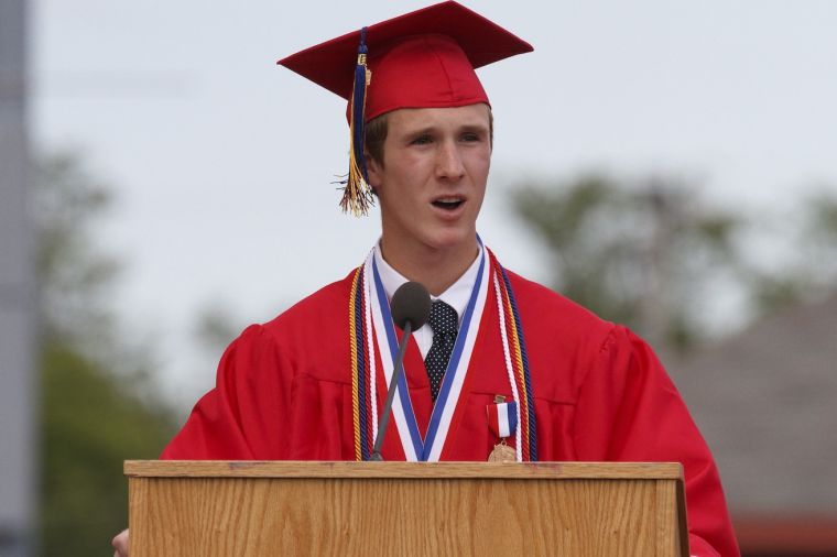Salutatorian Austin Downing delivers his address to classmates, faculty, family and friends.