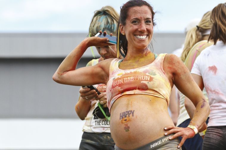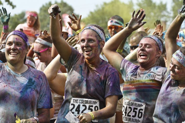 Runners zoom through thick swirling clouds of color, picking up plenty for themselves. (Staff photos by Adam Birt)