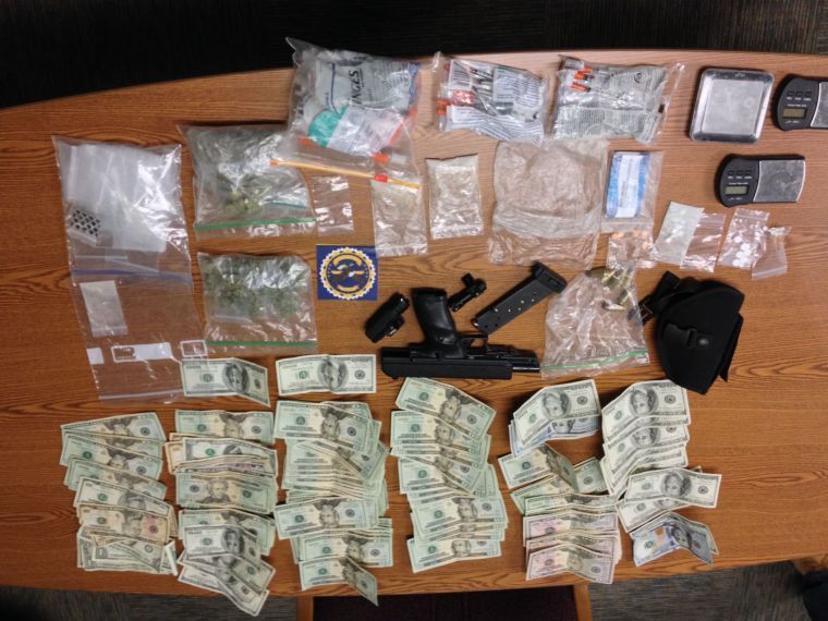 Roth said MDMC, heroin, marijuana, suboxone, oxycodone, adderall, clonazepam, lorazepam and bupremrophine pills was seized. A .45 caliber handgun and ammunition were located and seized, as well as $3,909, scales and packaging material.