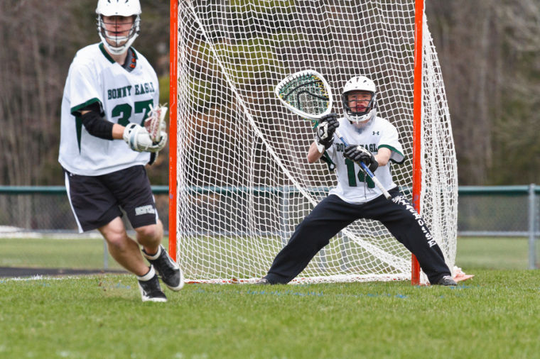 Bonny Eagle junior Baker Riddell (by day, a middie) volunteered to fill the net after regular goalie Jared Geaumont broke his collarbone snowboarding.
