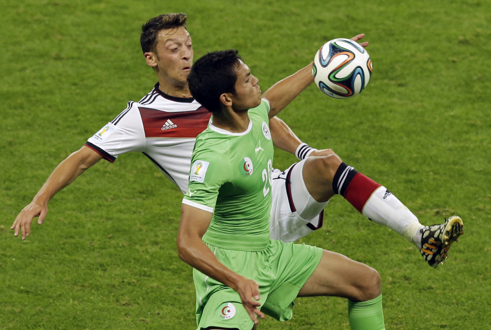 PORTO ALEGRE, Brazil – Substitute Andre Schuerrle and Mesut Ozil scored in extra time Monday to lead Germany over an aggressive Algeria 2-1 and into the World Cup quarterfinals.