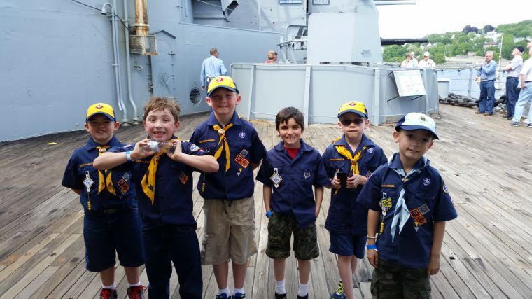 Cub Scout Pack 87 in Westbrook, accompanied by parents and adult leaders, bunked aboard the famous battleship USS Massachusetts at Fall River, Mass., in a visit last month.