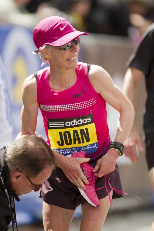 2013 Boston Marathon: Joan Benoit Samuelson at finish line.