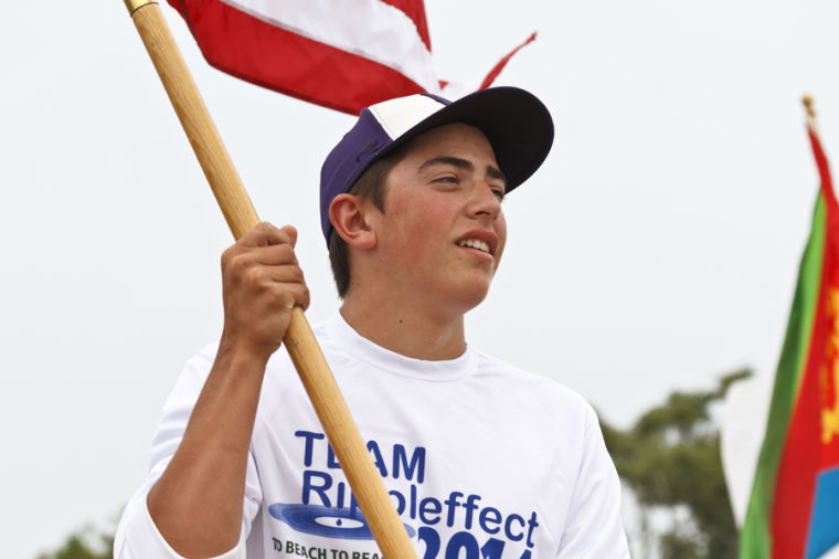 A member of team Rippleffect, this year’s TD B2B charity beneficiary, carries the American flag during the awards ceremony.