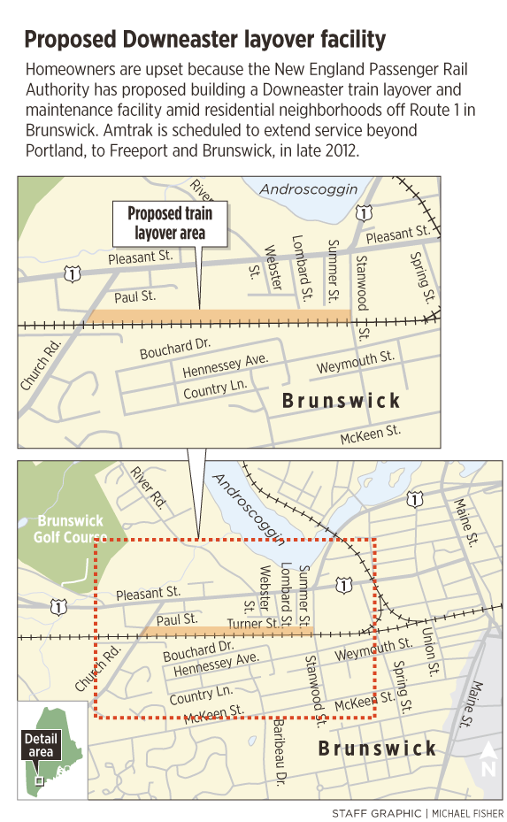 Northern New England Passenger Rail Authority, which operates the Amtrak Downeaster service between Boston and Brunswick, wants to build the facility on the site of a former railroad yard located between Pleasant Street and Bouchard Drive. The facility would allow crews to house Amtrak locomotives overnight as well as perform maintenance on the trains, including refueling, lubing, brake shoe replacement and cleaning.
