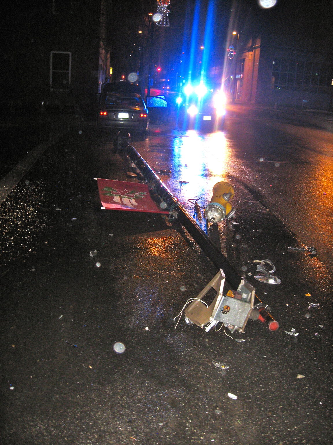 The driver of a car that took out a fire hydrant and flattened a streetlight pole early Tuesday morning at the corner of Main and Church streets fell asleep, said Westbrook Police Officer Douglas Maher.