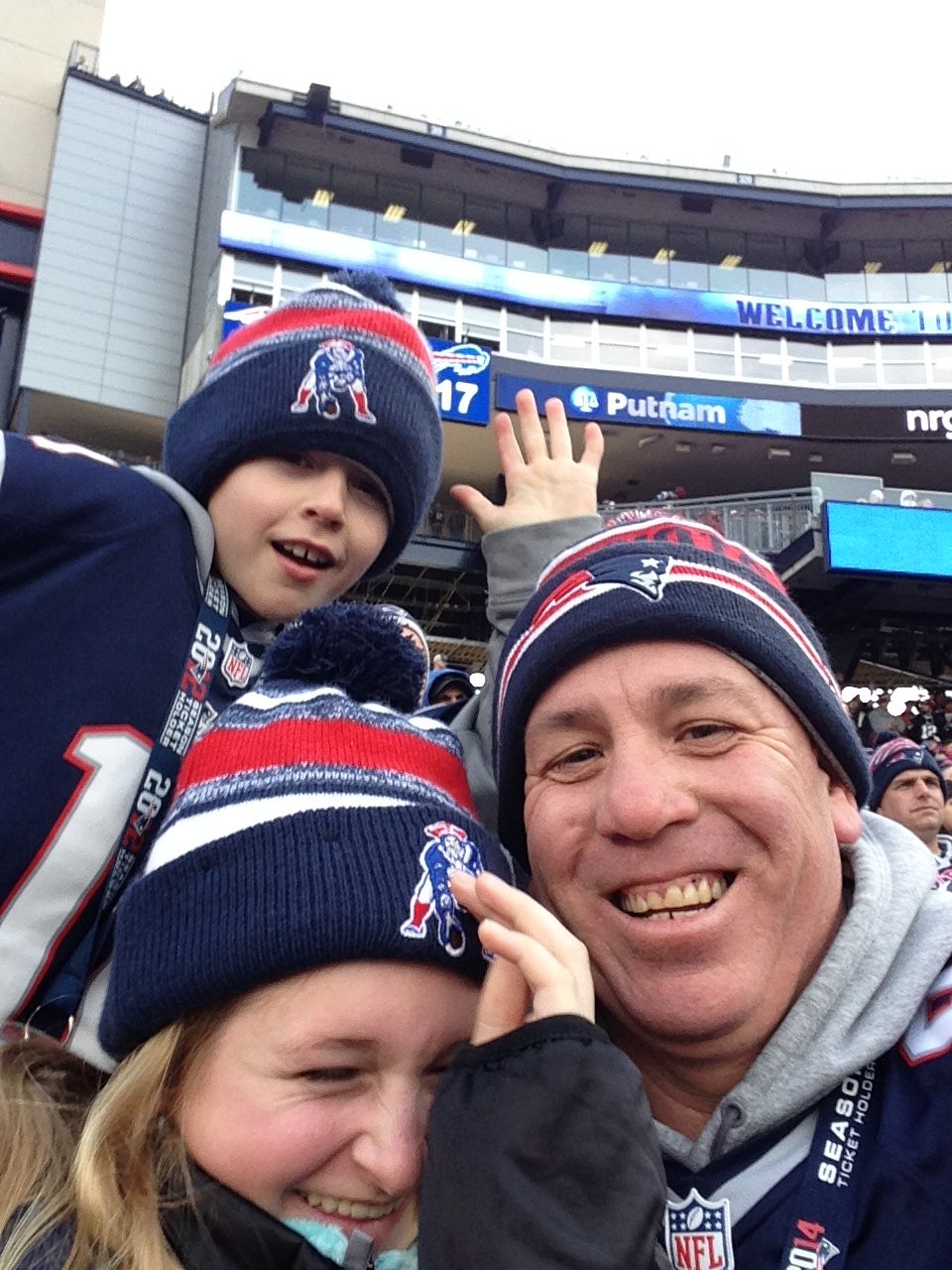 Bundled up on Dec. 28, when the Patriots played Buffalo, are Gabe Polchies of Gorham with his daughter Megan, 14, a Gorham High School student, and his son, Josh, 8, a Narragansett School student. Courtesy photo