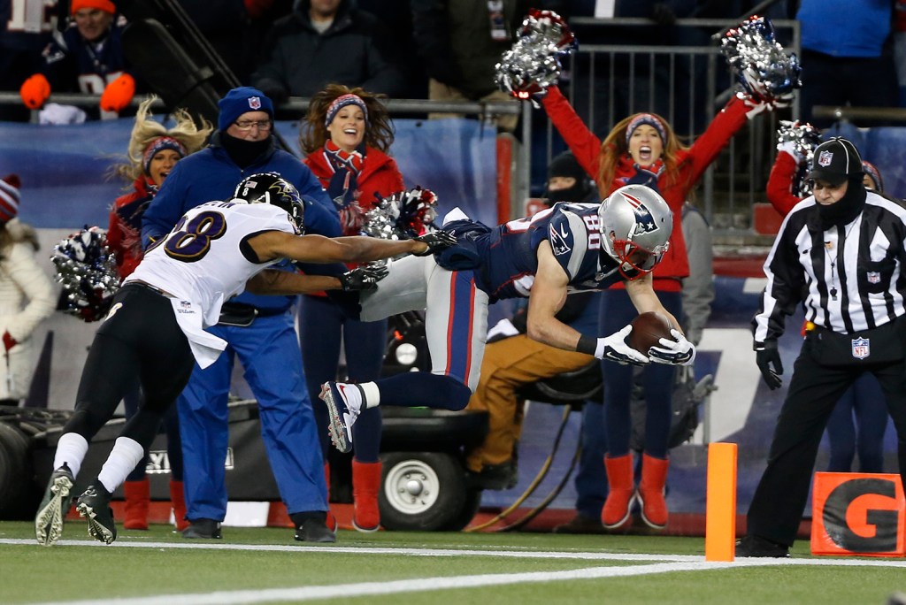 The Baltimore Ravens couldn’t keep pace, losing their lead and eventually the AFC divisional playoff game, 35-31. New England became the first team in NFL playoff history to overcome a pair of 14-point deficits and pull out a victory. The reward is a fourth consecutive berth in the AFC championship game, which will be back in the Patriots’ backyard next Sunday against either the Indianapolis Colts or the Denver Broncos.