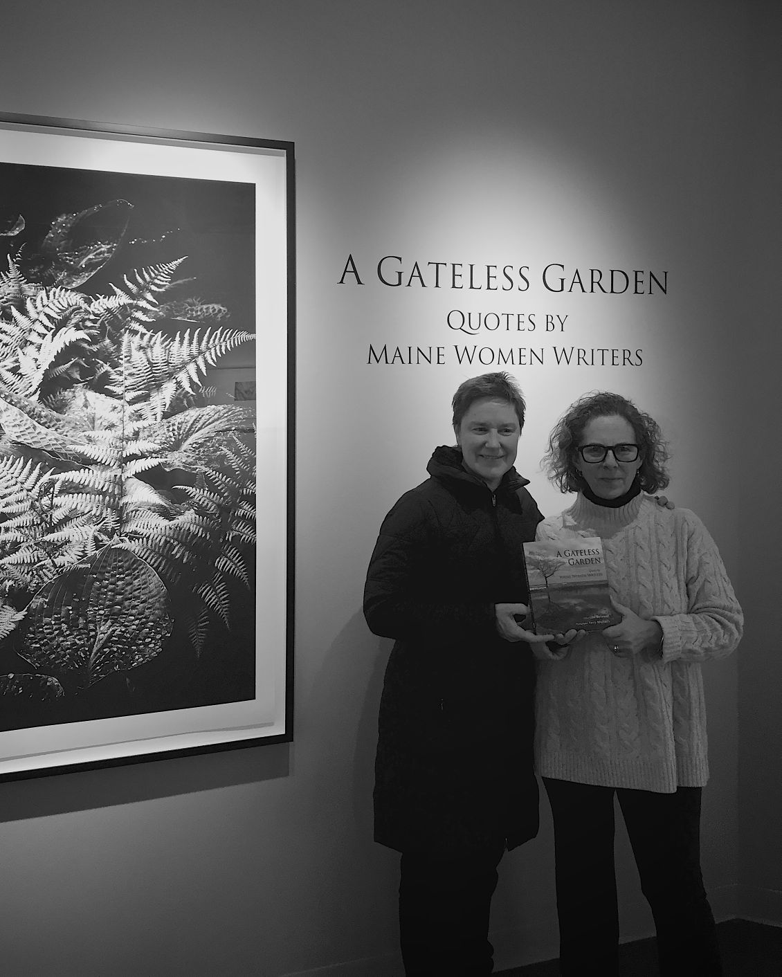 Liza Bakewell, left, and Kerry Michaels launched their book “A Gateless Garden, Quotes by Maine Women Writers,” on Jan. 20 at The Art Gallery at the University of New England in Portland. Courtesy photo