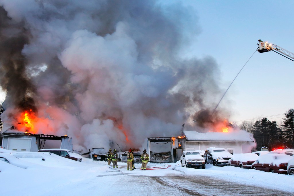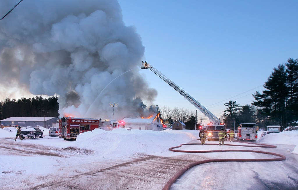Kennebunk firefighters, with help from Arundel and Wells, responded at 6 a.m. to a fire in the single-story building housing All About Kitchens and Kennebunk Village Repair, a vehicle repair shop.