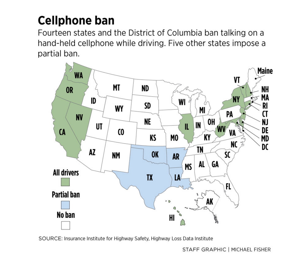 A bill sponsored by Rep. Anne-Marie Mastraccio, D-Sanford, would have Maine join 14 other states that ban the use of handheld mobile phones while driving. Another bill sponsored by Sen. Roger Katz, R-Augusta, would make Maine one of at least a dozen states that restrict the use of mobile phones to hands-free devices.