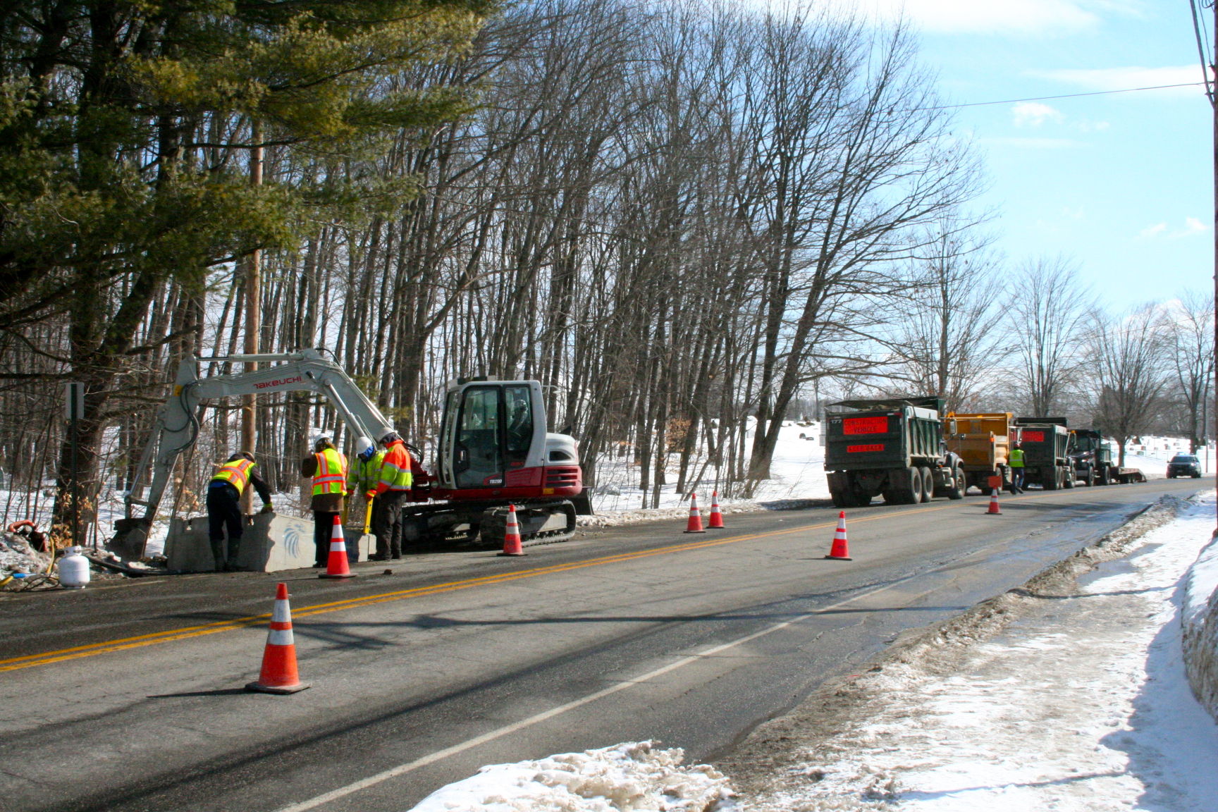 A water main break on Stroudwater Street caused slow traffic Monday as crews from Portland Water District worked to repair the break. Roughly 30 customers were affected from Sunday into Monday, but the main was repaired by 5 p.m. Staff photo by Andrew Rice